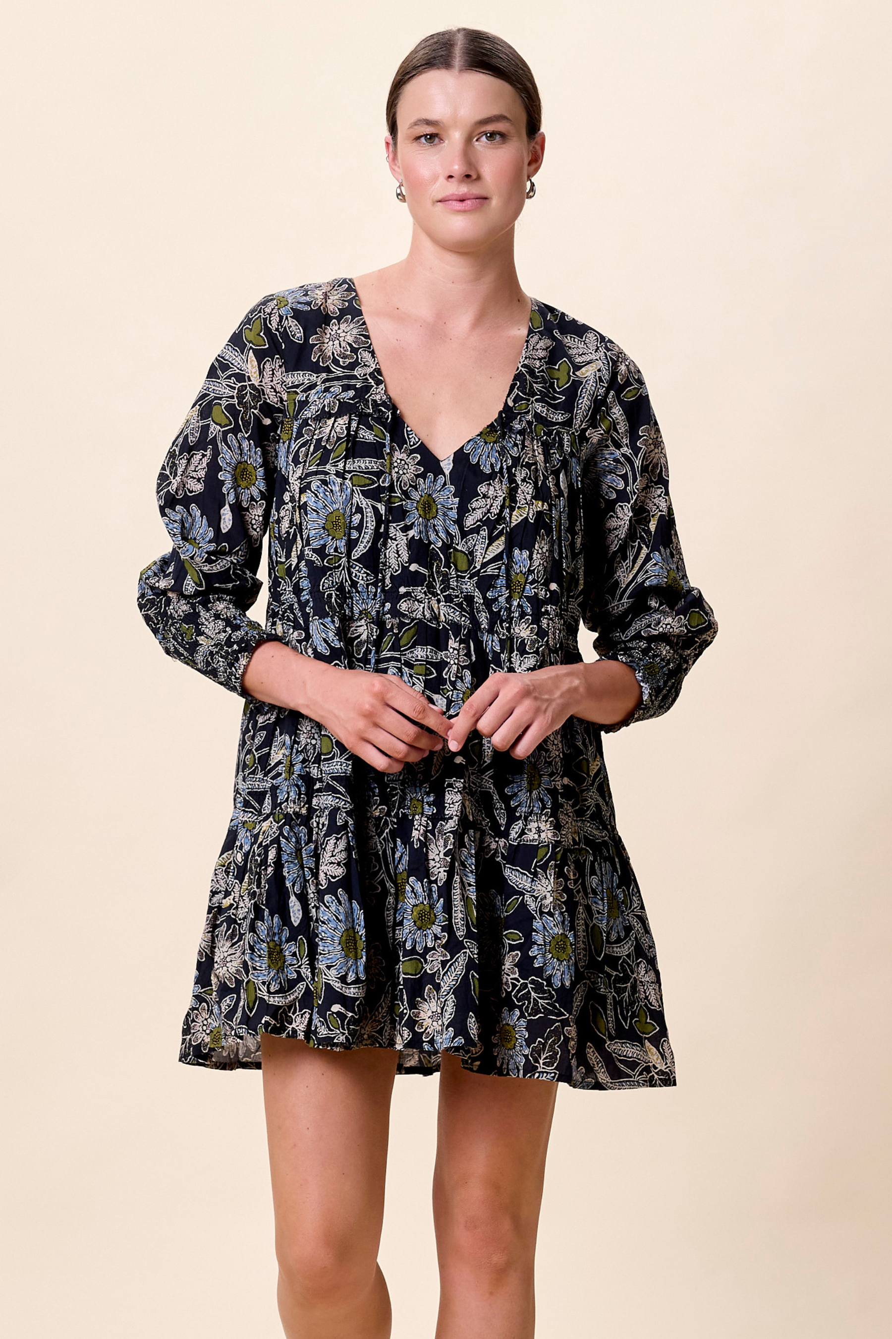 Raquel Mini Dress in Dark Magnolia Floral