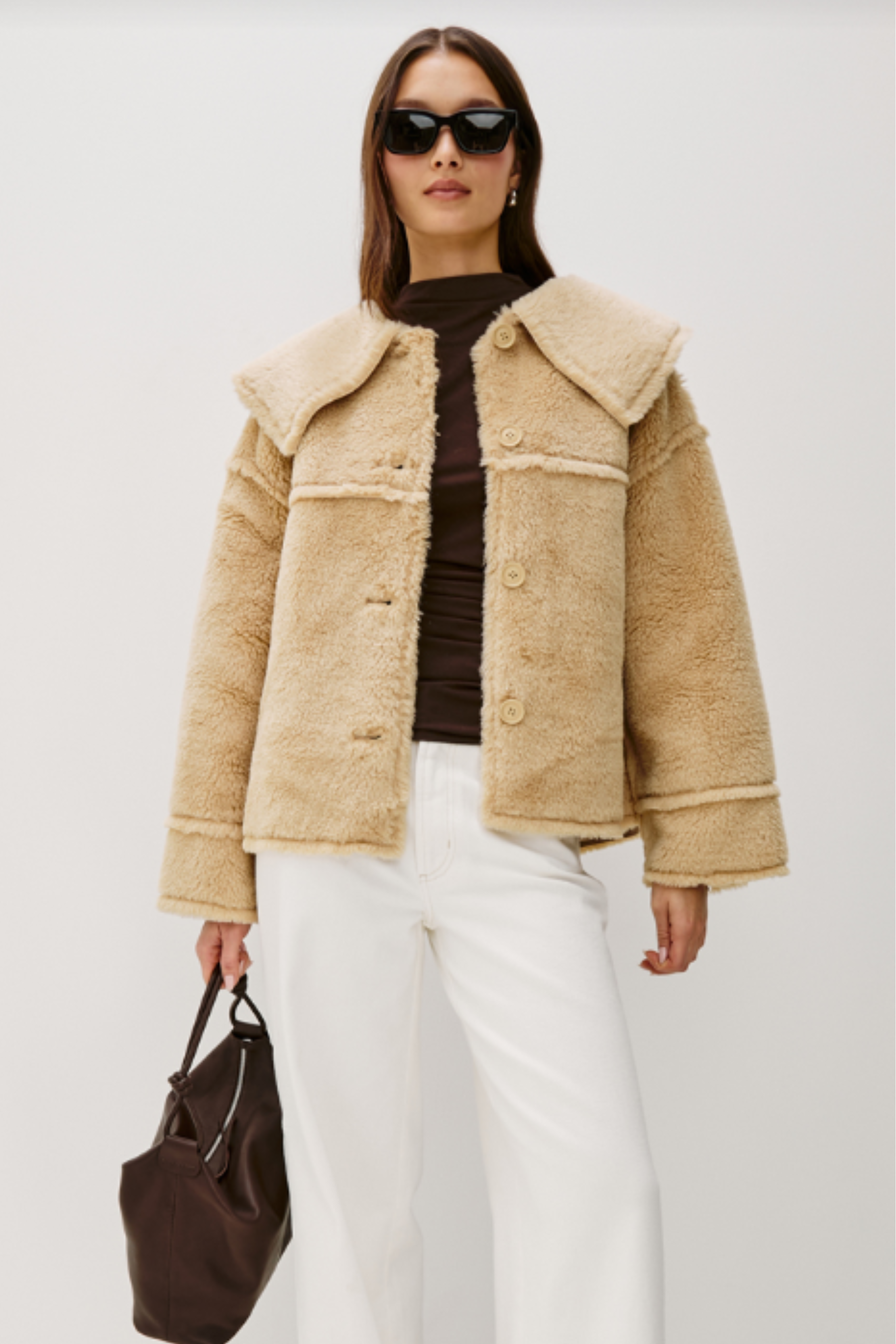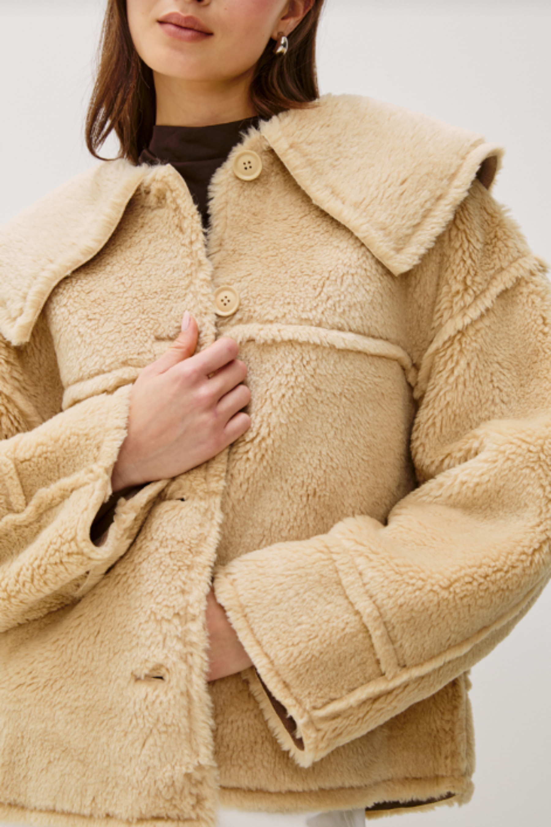 Teddy Button Up Jacket With Oversized Fold Down Collar
