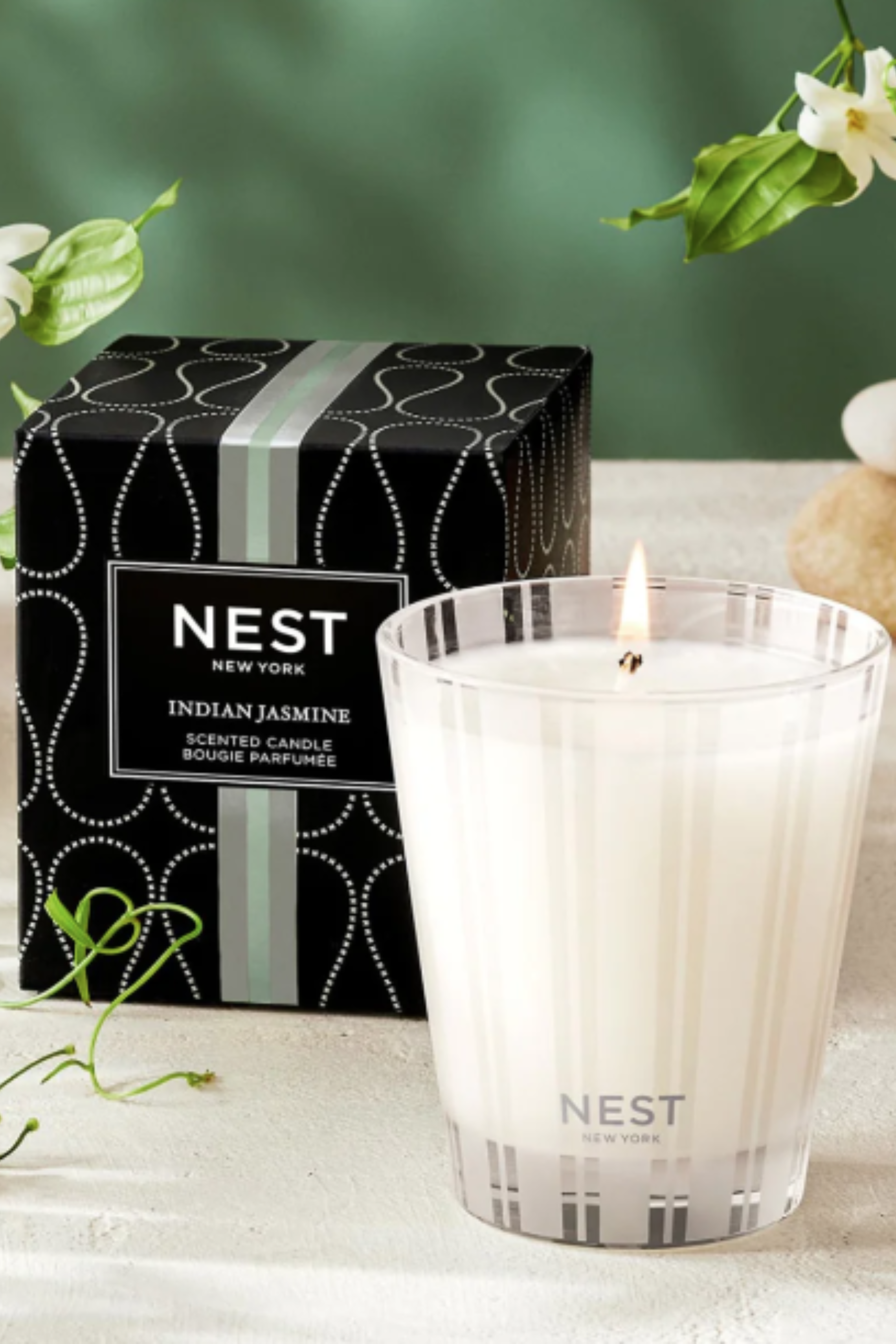 Immerse yourself in the lush jasmine fields of India with this scented candle featuring an intense jasmine absolute surrounded by bright red berries, sparkling bergamot, and spicy pink pepper.