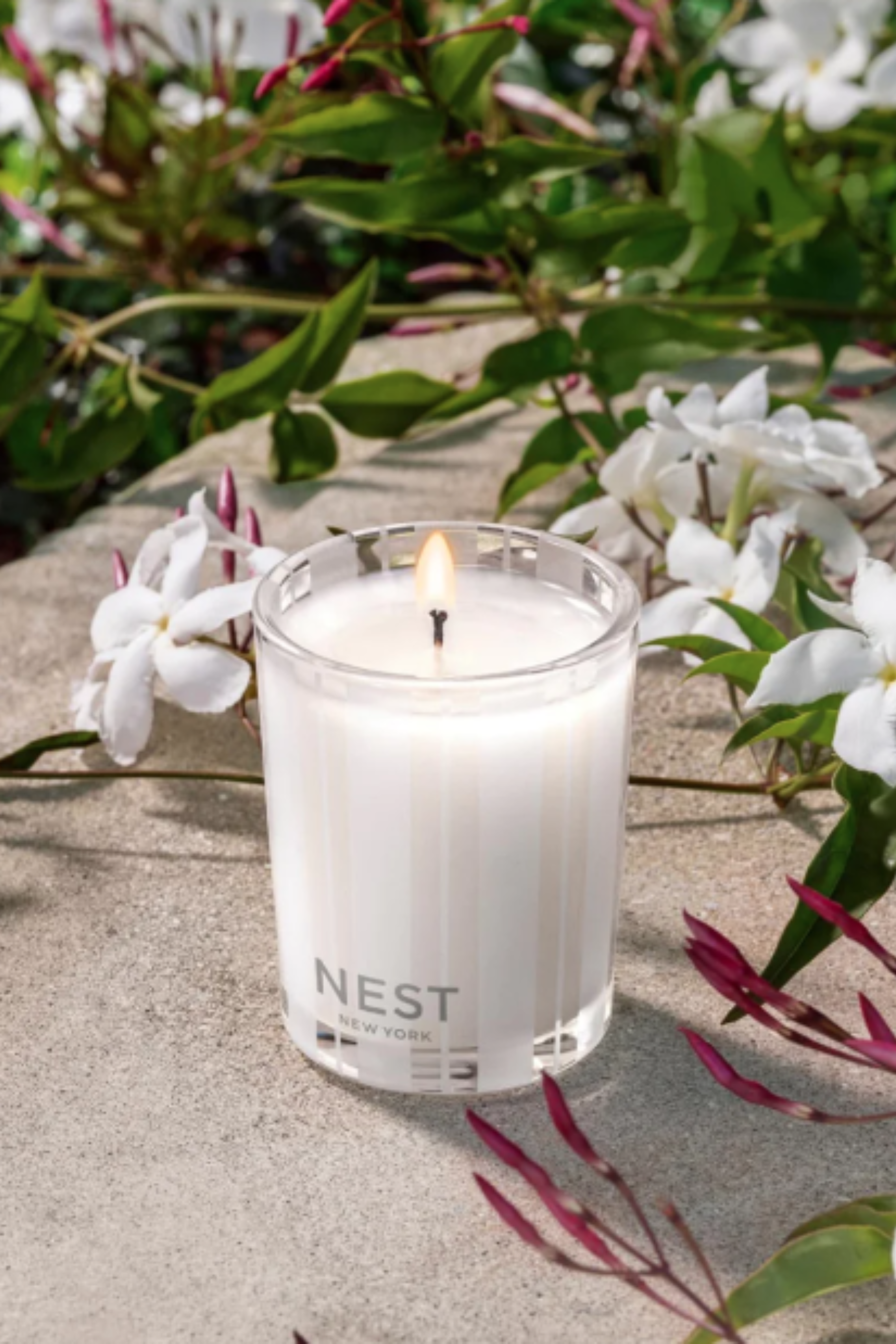 Immerse yourself in the lush jasmine fields of India with this scented candle featuring an intense jasmine absolute surrounded by bright red berries, sparkling bergamot, and spicy pink pepper.