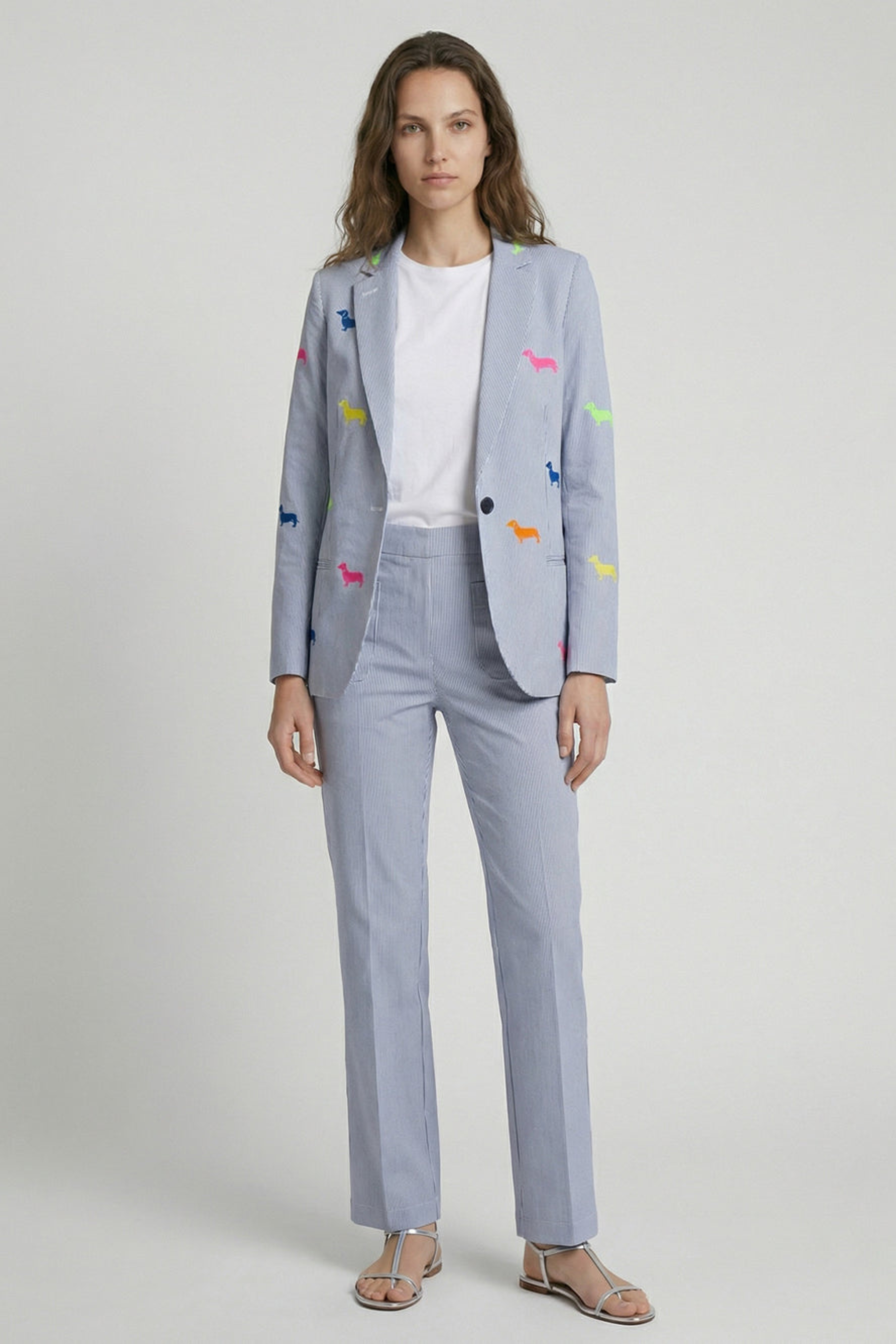 A sleek, straight-leg pant crafted in a soft, textured knit with a clean, streamlined silhouette. With A Pinstripe Pattern And Front Pockets. Designed with a flattering high-rise waist and subtle structure, this versatile style moves effortlessly from day to night. An easy essential that pairs beautifully with printed blouses, knits, or matching tops.
