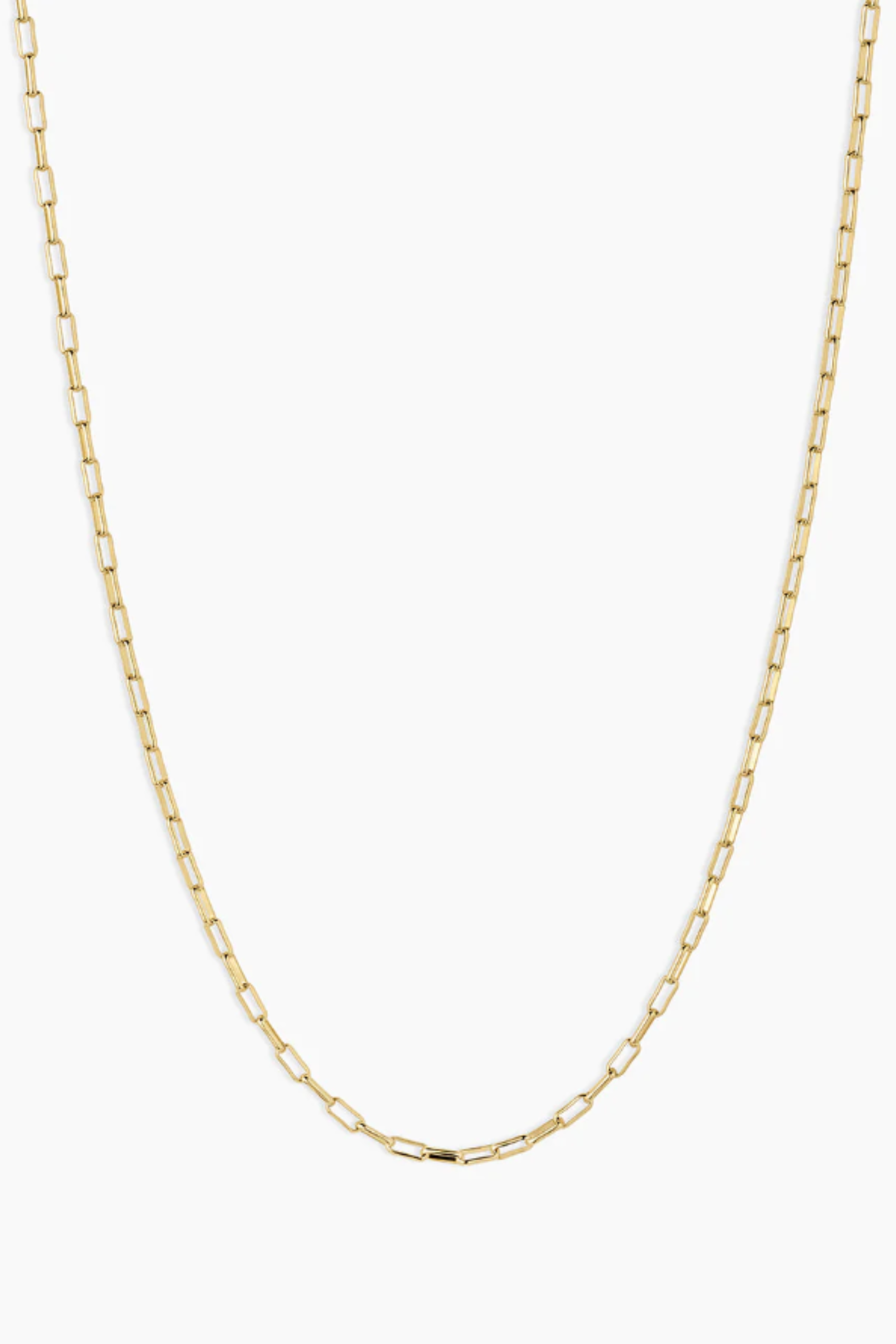 Sitting just below the collarbone, this dainty, 18k gold plated chain necklace was made to layer. Whether you choose to add charms to your chain, wear it alone, or really go for it and pair it with three or four other necklaces, this chain's lightweight feel and great look will make it a go-to piece in your rotation.